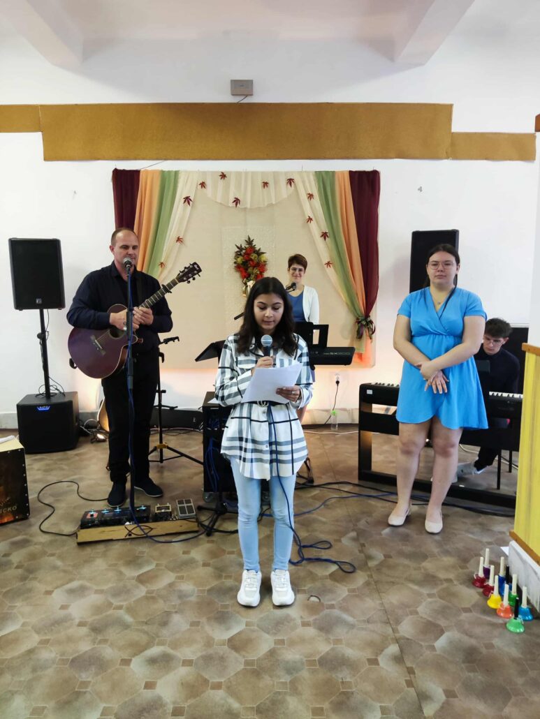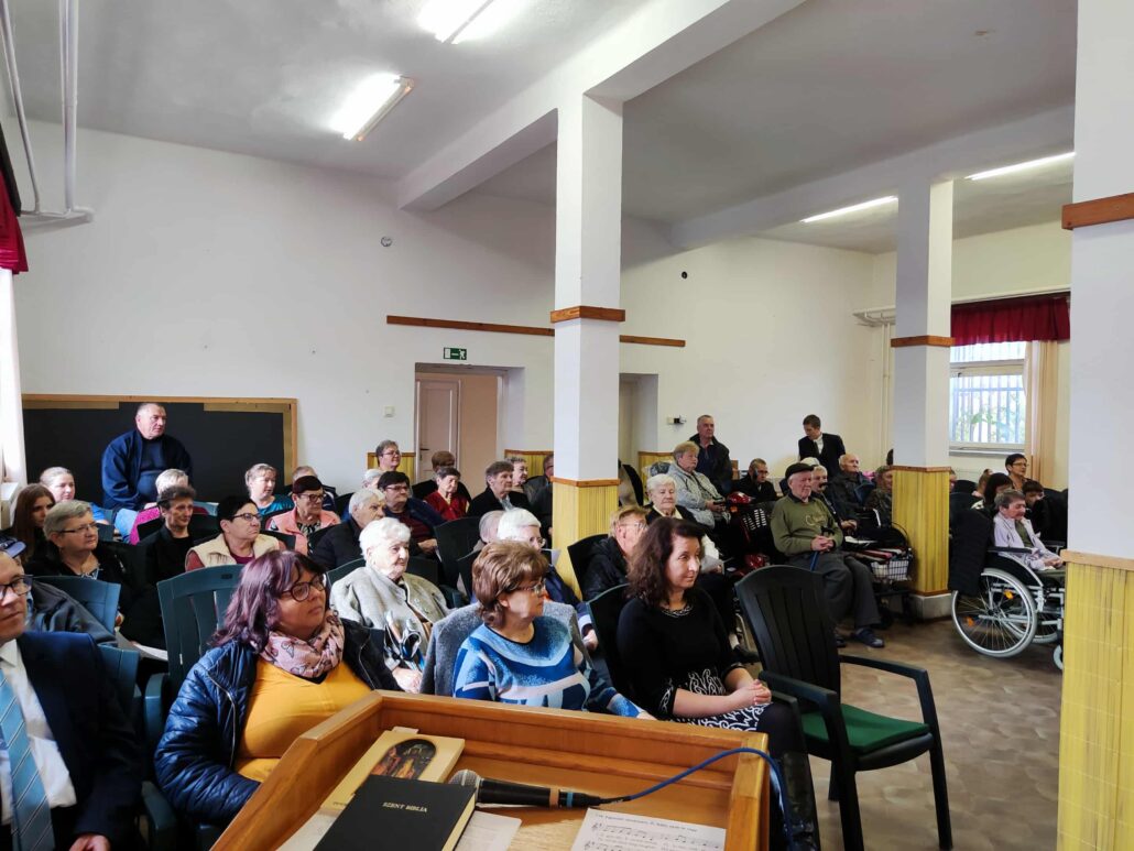 Az ünnepség kezdetén Istent dicsérte a gyerekek csengettyűjátéka, melyet az együttes gyönyörű énekszolgálatai követtek, versekkel tűzdelve. Az igeszolgálatot Hegyes Károly lelkész testvérünk tartotta, Ézs 55:8–11 versei alapján: „Mert nem az én gondolatom a ti gondolatotok” – szólt az Ige. Kiemelte, hogy a fókuszban Isten szava áll, melyen keresztül Isten egy egészséges életutat akar nekünk mutatni. Isten a magasságból letekint, mindenkit egyformán szeret, nem büntetni, hanem üdvözíteni akar. Isten a szeretet Istene, Jézus életén keresztül is ezt tapasztaljuk, mert amikor a keresztjét vitte, még akkor is azokért imádkozott akik Őt bántalmazták és keresztre feszítették. Amikor földi szolgálatát befejezte, elment, hogy helyet készítsen nekünk, és megígérte, hogy visszajön értünk. Az Ő ígérete biztos. Ezen a földön érhetnek megpróbáltatások, betegségek, nehézségek, de tapasztalhatjuk, hogy Ő mindig mellettünk van, irgalmassága el nem távozik tőlünk és békessége szövetsége meg nem rendül. Lelkész testvérünk figyelmünket Isten örök országa felé irányította, ahol már nem lesz könny, bánat, fájdalom, gyász, mert az Isten eltöröl minden könnyet szemeinkről. Kiváltságunk, hogy mi mindnyájan Jézussal lehetünk a győztesek között! Addig is szeressük egymást, tükrözzük Isten szeretetét egymás felé egy kedves mosollyal, egy jó szóval, – így készüljünk az Ő dicső országába.