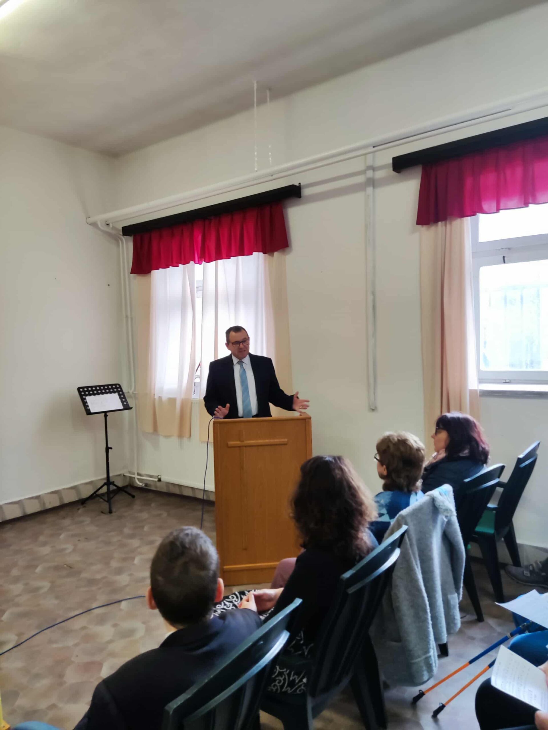 Az ünnepség kezdetén Istent dicsérte a gyerekek csengettyűjátéka, melyet az együttes gyönyörű énekszolgálatai követtek, versekkel tűzdelve. Az igeszolgálatot Hegyes Károly lelkész testvérünk tartotta, Ézs 55:8–11 versei alapján: „Mert nem az én gondolatom a ti gondolatotok” – szólt az Ige. Kiemelte, hogy a fókuszban Isten szava áll, melyen keresztül Isten egy egészséges életutat akar nekünk mutatni. Isten a magasságból letekint, mindenkit egyformán szeret, nem büntetni, hanem üdvözíteni akar. Isten a szeretet Istene, Jézus életén keresztül is ezt tapasztaljuk, mert amikor a keresztjét vitte, még akkor is azokért imádkozott akik Őt bántalmazták és keresztre feszítették. Amikor földi szolgálatát befejezte, elment, hogy helyet készítsen nekünk, és megígérte, hogy visszajön értünk. Az Ő ígérete biztos. Ezen a földön érhetnek megpróbáltatások, betegségek, nehézségek, de tapasztalhatjuk, hogy Ő mindig mellettünk van, irgalmassága el nem távozik tőlünk és békessége szövetsége meg nem rendül. Lelkész testvérünk figyelmünket Isten örök országa felé irányította, ahol már nem lesz könny, bánat, fájdalom, gyász, mert az Isten eltöröl minden könnyet szemeinkről. Kiváltságunk, hogy mi mindnyájan Jézussal lehetünk a győztesek között! Addig is szeressük egymást, tükrözzük Isten szeretetét egymás felé egy kedves mosollyal, egy jó szóval, – így készüljünk az Ő dicső országába.