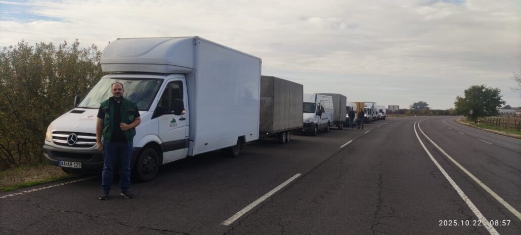 2025. október 22-én nem mindennapi szállítmánnyal indultunk Munkácsra. Egy közös projekt keretében a Cseh ADRA, illetve a magyar NEEKA hét teherautó segélyszállítmányt vitt át a határon. Legutóbb ilyen méretű adományt a háború kitörése utáni hónapokban vittünk át egyszerre. A konvojhoz csatlakoztak a rendszeresen kijáró Keresztény Adventista testvérek is 2 teherkocsival. A szállítmány főként tartós élelmiszerekből állt: liszt, cukor, tej, konzerv, lencse, hajdina, méz, lekvár stb., de volt egy raklap „cipősdoboz” is, amit sikeresen át tudtunk adni az ukrán fogadófélnek.