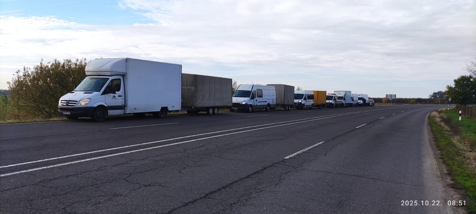 2025. október 22-én nem mindennapi szállítmánnyal indultunk Munkácsra. Egy közös projekt keretében a Cseh ADRA, illetve a magyar NEEKA hét teherautó segélyszállítmányt vitt át a határon. Legutóbb ilyen méretű adományt a háború kitörése utáni hónapokban vittünk át egyszerre. A konvojhoz csatlakoztak a rendszeresen kijáró Keresztény Adventista testvérek is 2 teherkocsival. A szállítmány főként tartós élelmiszerekből állt: liszt, cukor, tej, konzerv, lencse, hajdina, méz, lekvár stb., de volt egy raklap „cipősdoboz” is, amit sikeresen át tudtunk adni az ukrán fogadófélnek.