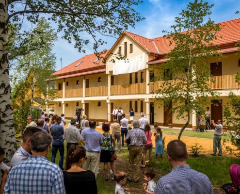 Az épület falán elhelyezett felirat és névtábla leleplezése után a nemzeti színű szalag átvágásával testvéreink felavatták az új épületet, majd egy közös imával és az Advent himnusz eléneklésével zárult a délelőtti, ünnepélyes istentisztelet.