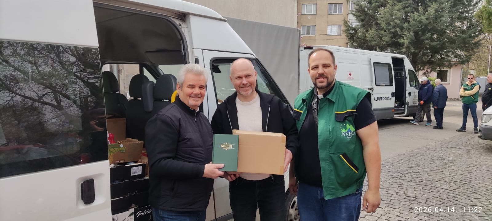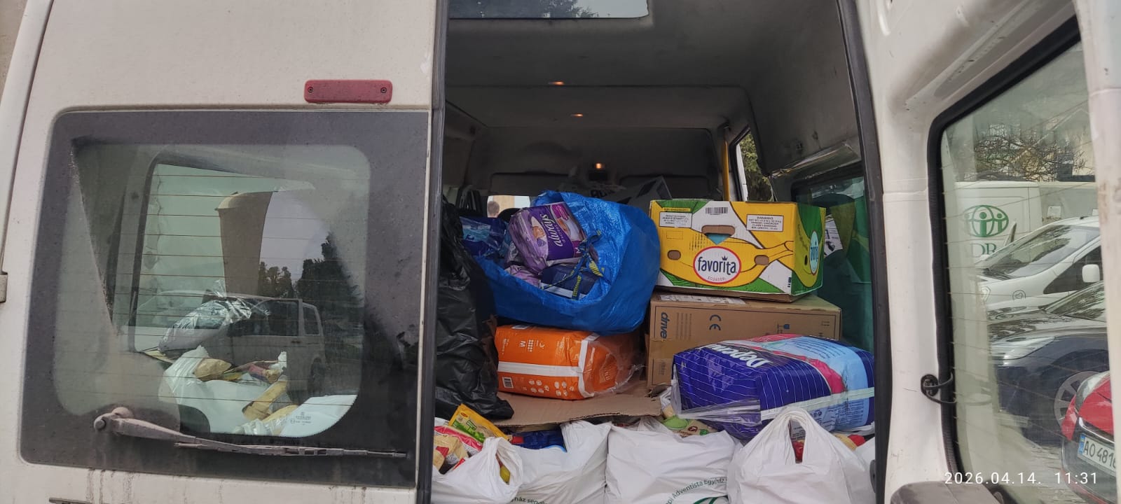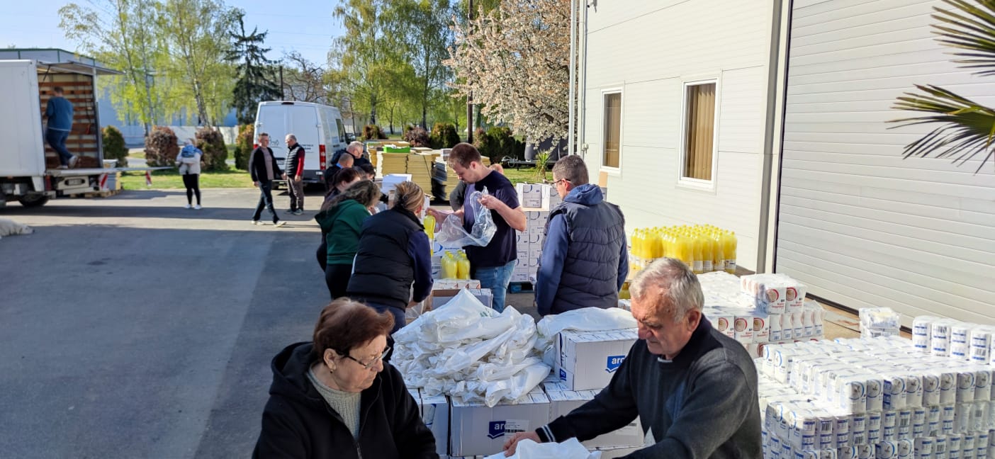 A csomagok átadására április 14-én került sor. A hajnali órákban indultunk, hiszen a fogadó felek közel 1000 km-ről érkeztek, hogy átvegyék az adományokat: csomagokat, higiéniai termékeket (tusfürdő, szappan, fogkrém, fogkefe, pelenka stb.), valamint élelmiszereket is. Ezeket hollandiai, nijmegeni katolikus testvéreink gyűjtötték össze számukra. Az átvétel után a küldöttségek azonnal vissza is indultak szolgálati területükre.