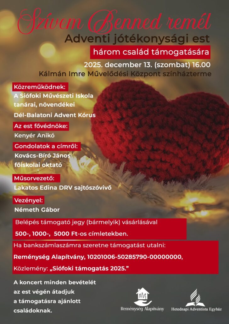 Útra kelünk. Négy hét, négy koncert a Dél-Balatoni Advent Kórus és még sok előadó szolgálatában. Hálásak vagyunk, hogy mára az országban sokfelé szerveznek testvéreink támogató, jótékonysági koncerteket, ahol nagy összefogással több millió Ft támogatást fogunk gyűjteni ebben az évben is sok teherrel küzdő gyermek és család részére.