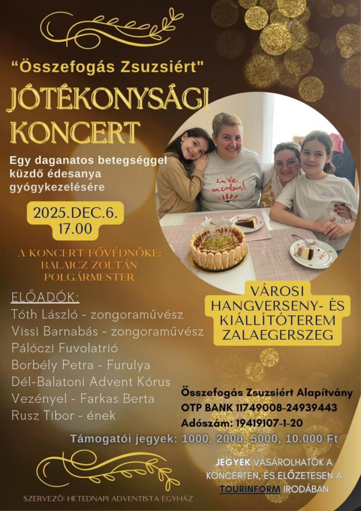 - December 6-án, 17.00; Zalaegerszeg – Összefogás Zsuzsáért